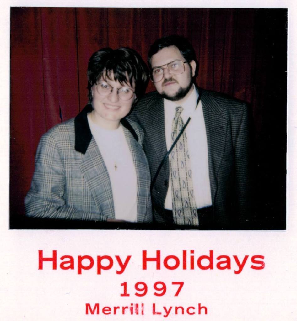 Prima noastră petrecere de Crăciun la prima companie unde am lucrat în primul an când am ajuns în America. Legenda spunea că pentru a opri Popeștii din muncă trebuie să închizi compania – și pentru că în acea seară Merrill Lynch era închisă, Popeștii au petrecut.