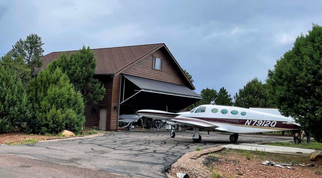 În plimbările noastre ne-a intrigat un semn de circulatie, nemaivăzut până atunci, Prioritate Avioanelor! Am fost siguri că e o glumă locală, deși știam că e un aeroport mic și privat lângă noi. Și totuși … și totuși … unii oameni aveau în garaj, avioane. Pe lângă mașini, ATV-uri, rulote, și multe altele. La unele case garajul era mai mare decât casa propriu-zisă. Nu prea înțelegeam de ce, până am văzut avioanele.