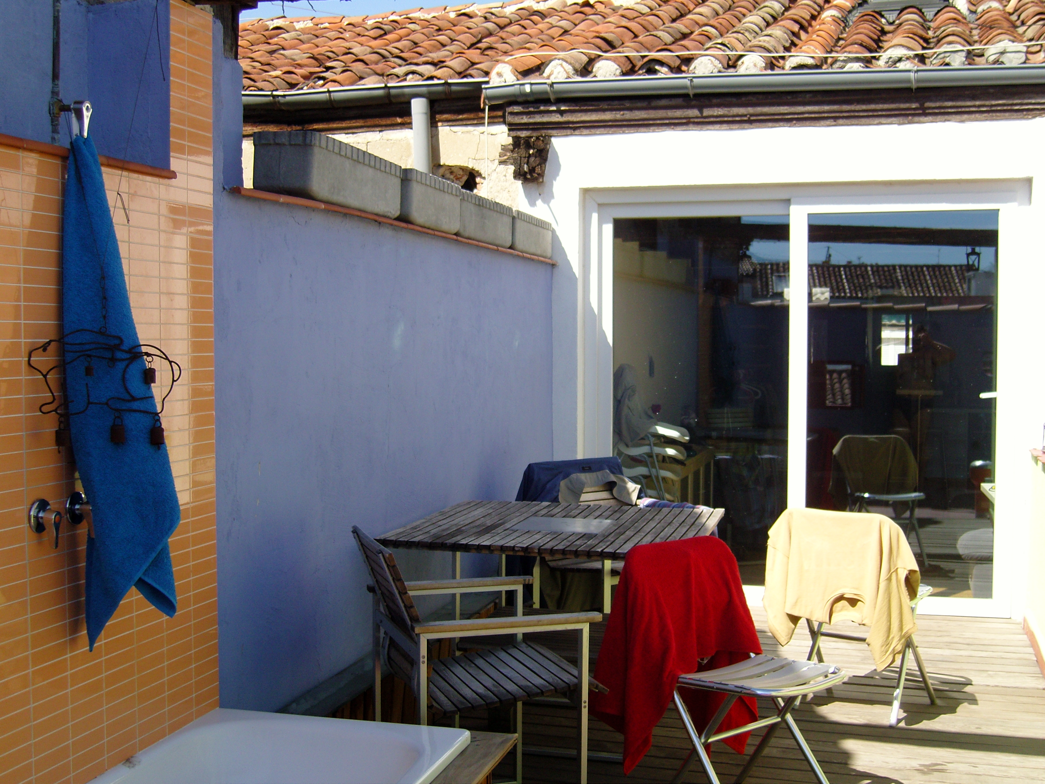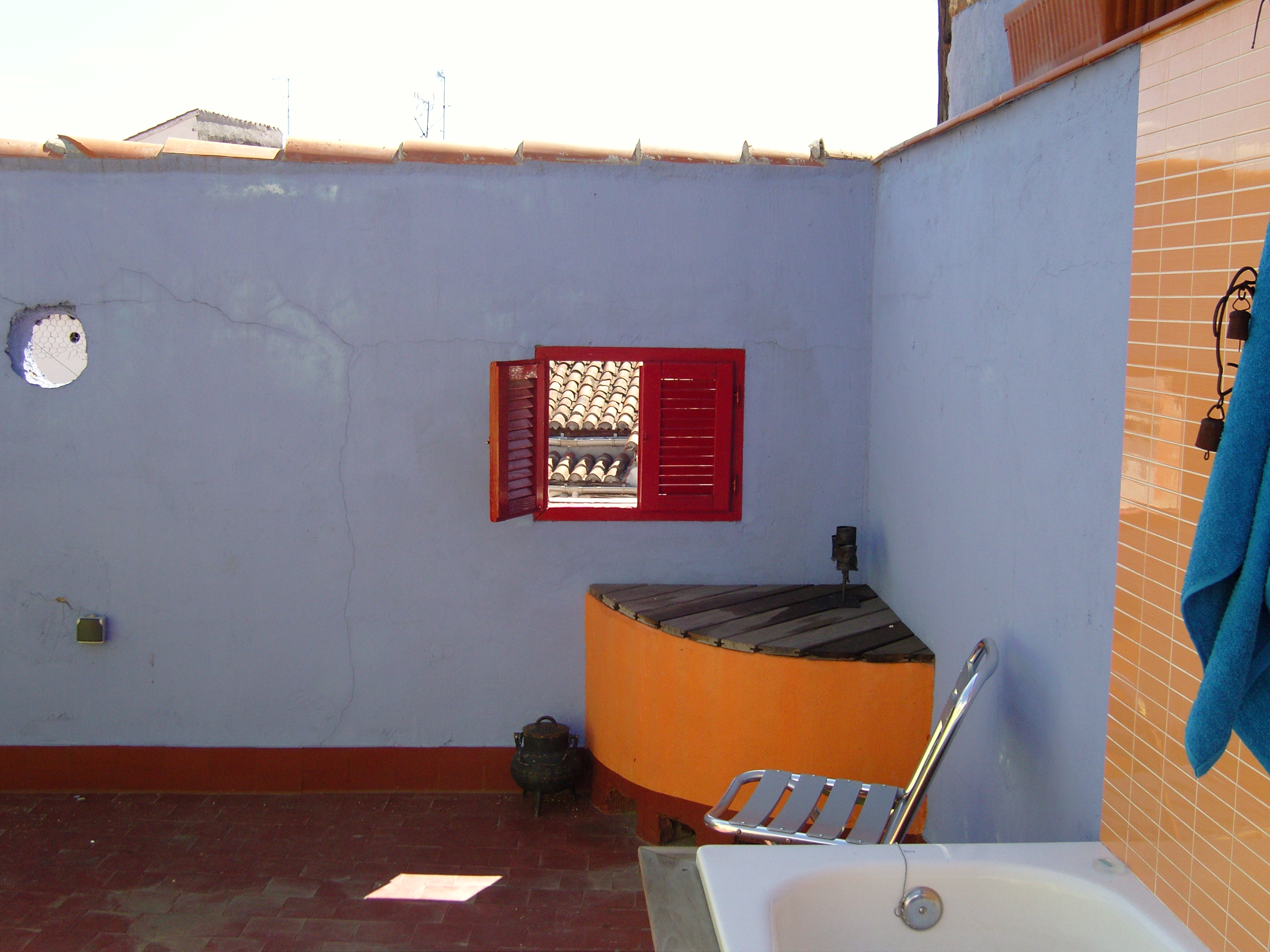 The surprise of Madrid for me was that the apartment was on the 5th floor without an elevator and the duplex was actually a loft/penthouse(ish) divided into two levels. We were on the roof, we had a terrace with an over/grill, and an outside shower, a perfectly equipped kitchen, an internal staircase and two bedrooms under the roof and one at ground level. Ground, I mean kitchen level. The Grandfather, tired, but at night he still needed to go to the bathroom and, we (who were sleeping under the roof), could hear: “Bang! Clank! My head hit the ceiling, and then a fucking beam, and my teeth fell out. At the age of 73, I ended up sleeping in the attic!”