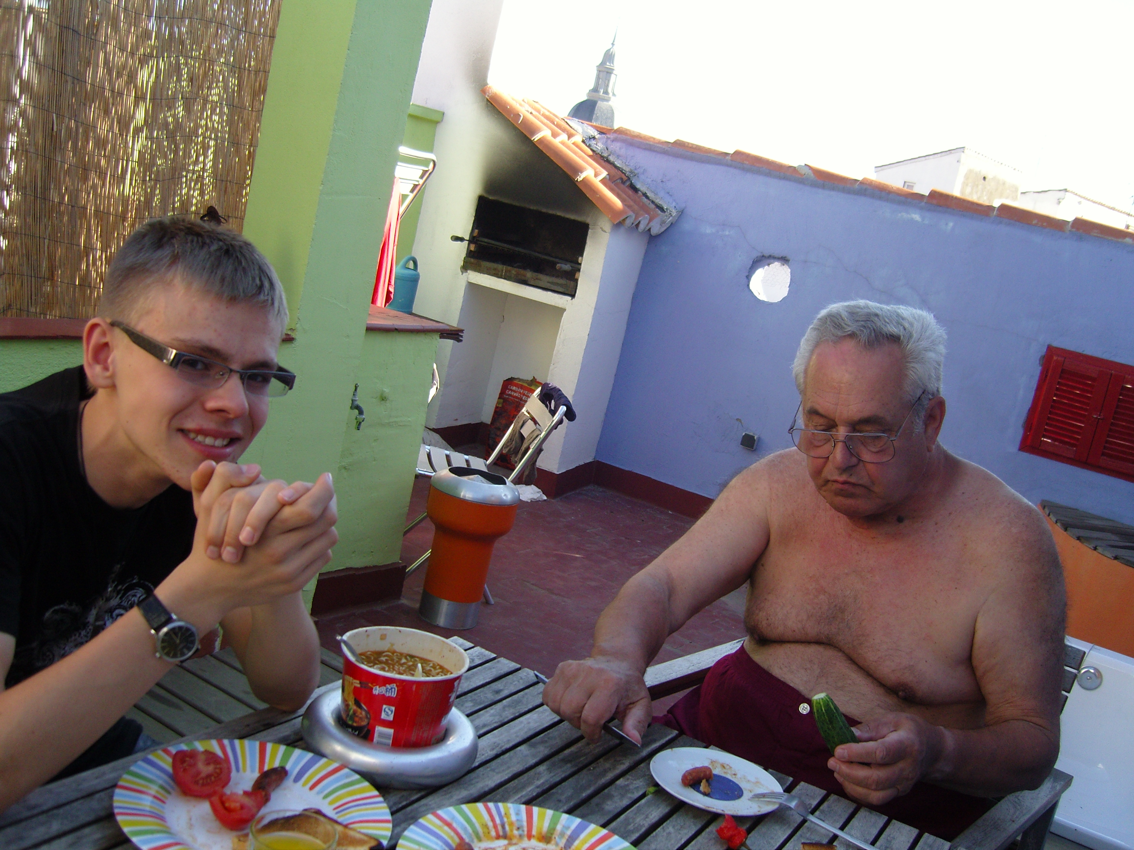 Nothing to report about the flight, except that the bottle of tzuica broke in our luggage and, of course, it leaked. It was stinking in the terminal (tzuica having a very specific smell), but all the other travelers were Romanians, so we blamed the stink on the neighbors. Seeing the panicked looks in their eyes and how fast they started checking their luggage it seems that they also had some tzuica with them. The Grandfather swore badly and tried to drink what was left of it. He couldn’t, it was a big bottle, and left the carousel area with the bottle in his hand, telling the customs officers who asked (pointing at the bottle) if he had anything to declare, that he had nothing. They asked in Catalan, Mon Pere answered in Romanian. Somehow they understood each other. The taxi driver and I didn’t understand each other, because he knew neither English, nor Romanian. My conversation guide was in Spanish, and that fighter for freedom of Catalonia pretended not to understand. I wrote the address on a piece of paper, and thirty euros later he left it somewhere next to the address. I found the address, I found the host waiting for us, some euros exchanged hands, the Grandpa had a drink (or more) of tzuica with the host, the host happily obliged and drank with him, got on the scooter, and away he rode, very steady, to my surprise.