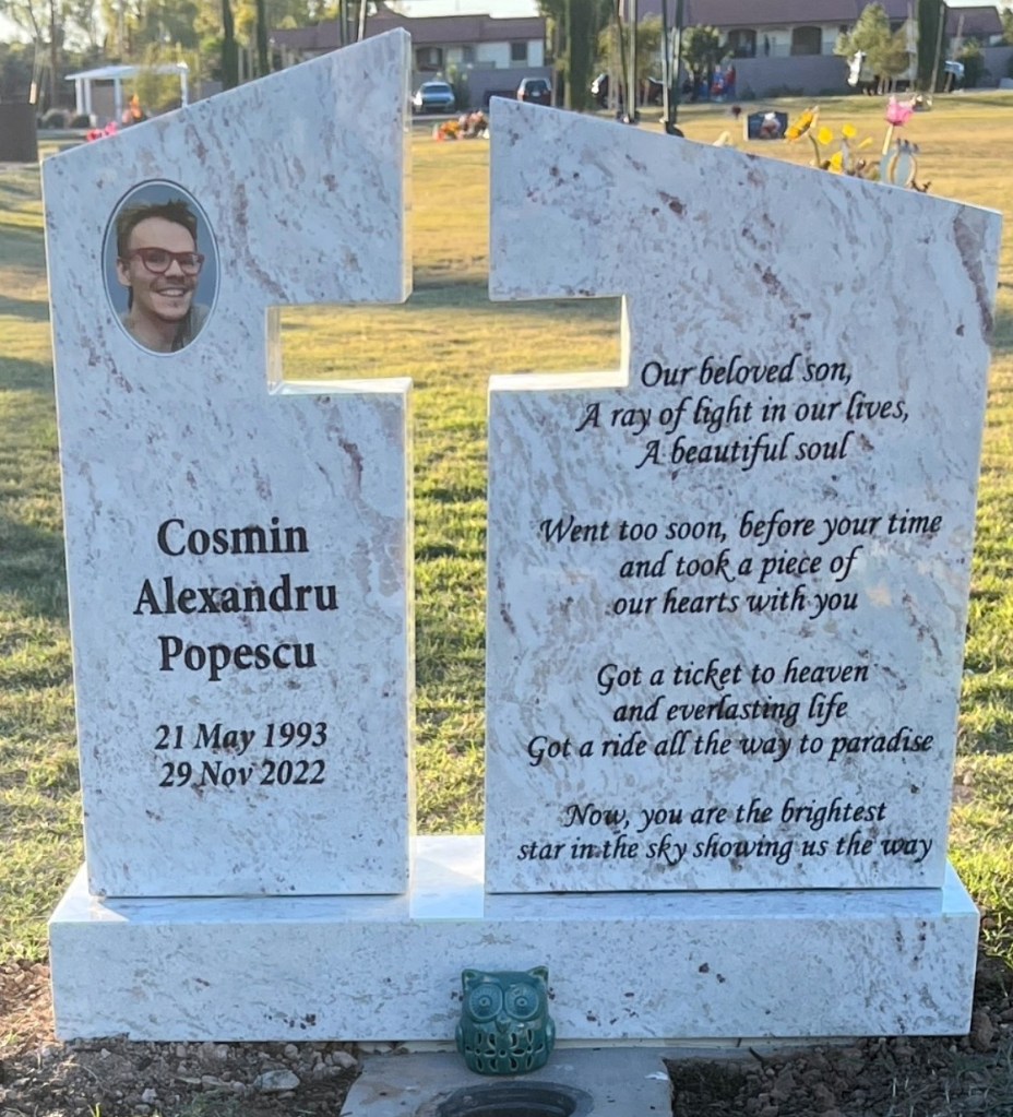 Plus, this would have defied the main idea we started from: to be something simple, not very different, yet not the same as all the other monuments, and decently priced. Cosmin somehow would have had the most unusual, expensive monument in the cemetery.