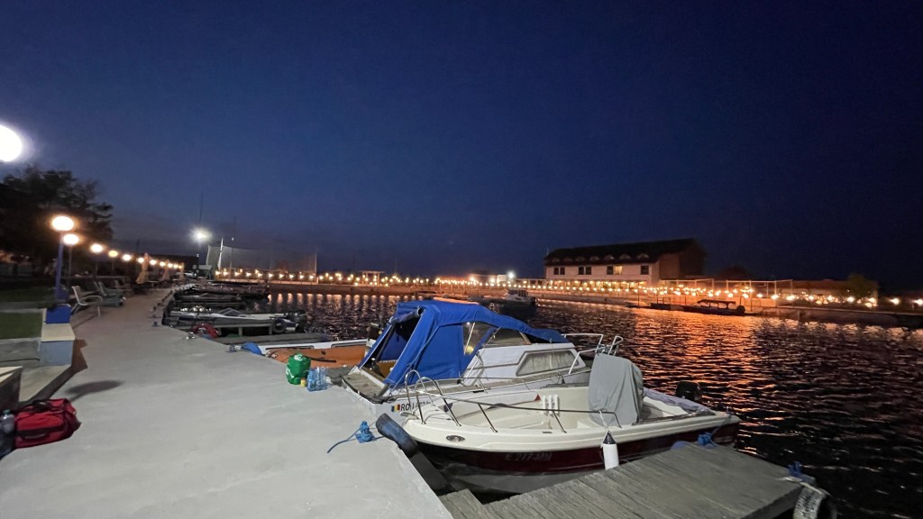 Am dormit în barcă, a fost destul de interesant – am rezistat unui asalt de țânțari, abia m-am convins eu pe mine însumi să stau în spatele plasei și să nu fac poze la lună si la stelele cele multe, privindu-se în apele liniștite ale canalului, ca într-o oglindă, ne-am hrănit pe noi, și pe pești (cu resturi), ne-am hidratat bine. Dintr-o dată, barca nu mai părea atât de mare: cred că aproape jumătate din timp l-am petrecut mutând lucruri. Să dormi într-o barcă mică nu este pentru cei slabi de înger. Vrei legume, mută apa, vrei pâine, vezi să nu cadă cafeaua pe tine, vrei bere, mută bagajele din dreapta, vrei să dormi, mută tot. Dar nu ai pernă, și atunci aduci o geantă înapoi, să pui capul pe ea, dar ai grijă să nu-ți intre o cataramă în ochi. Dar ne-am descurcat, nevoile de bază au fost acoperite: apa, papa, somnic, pipilic.