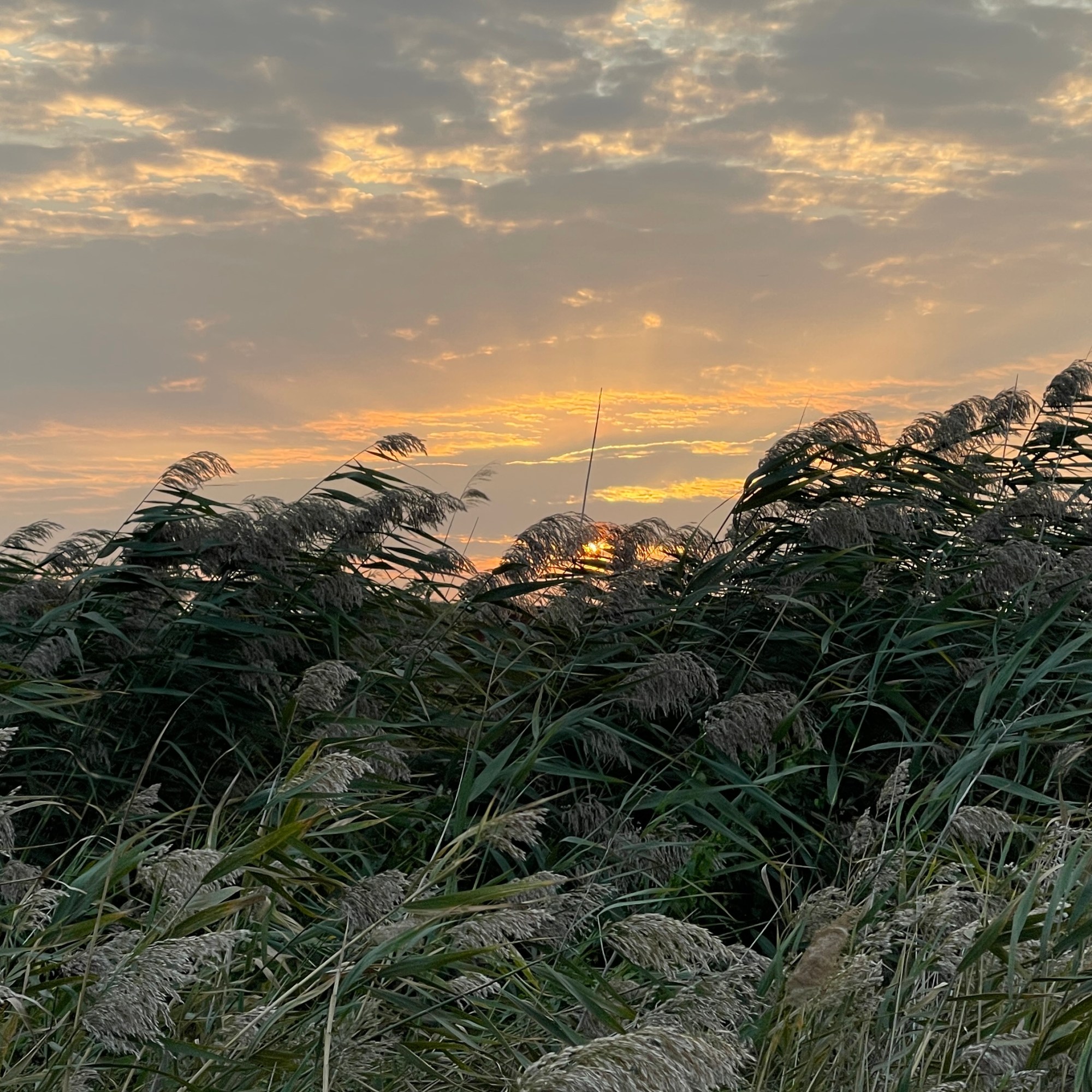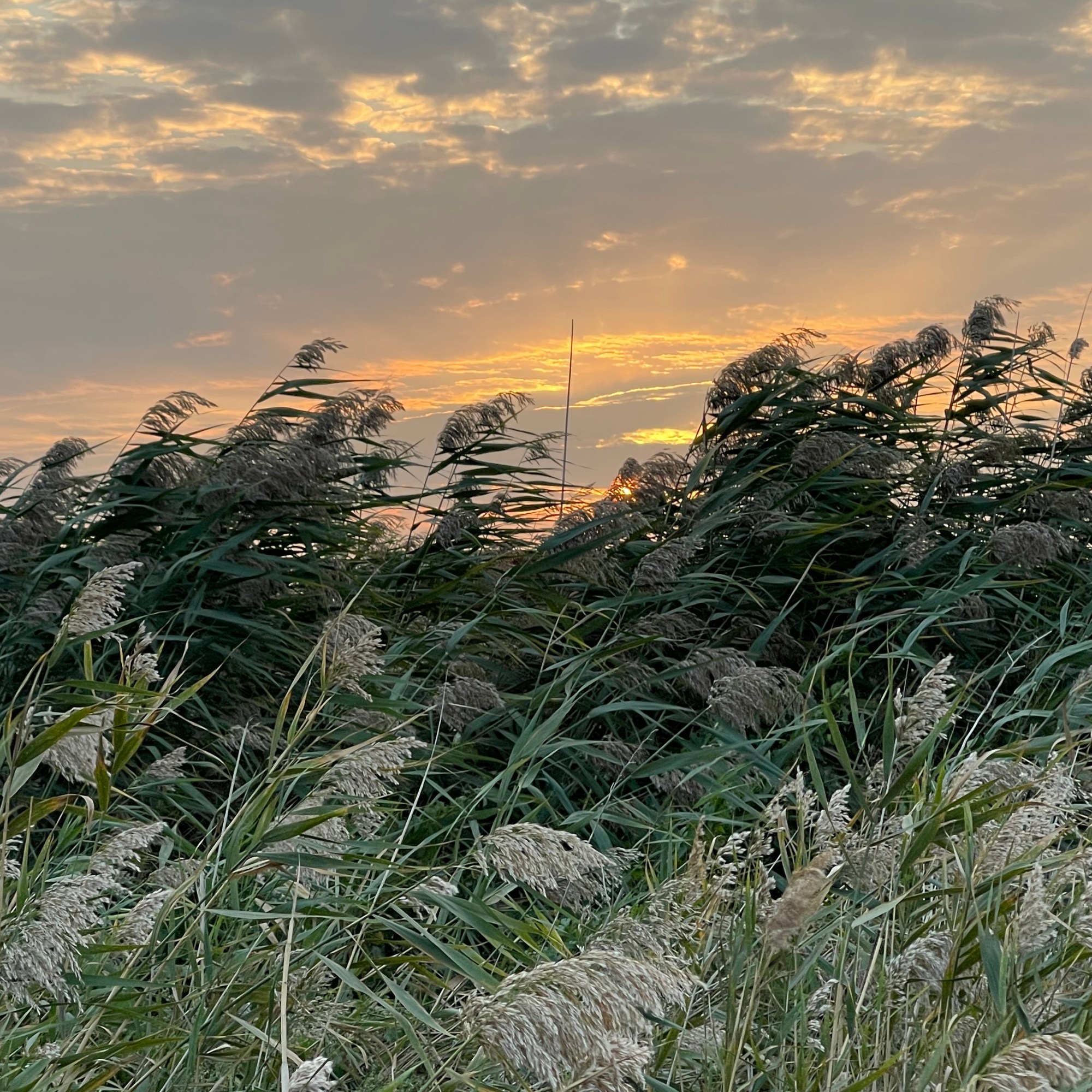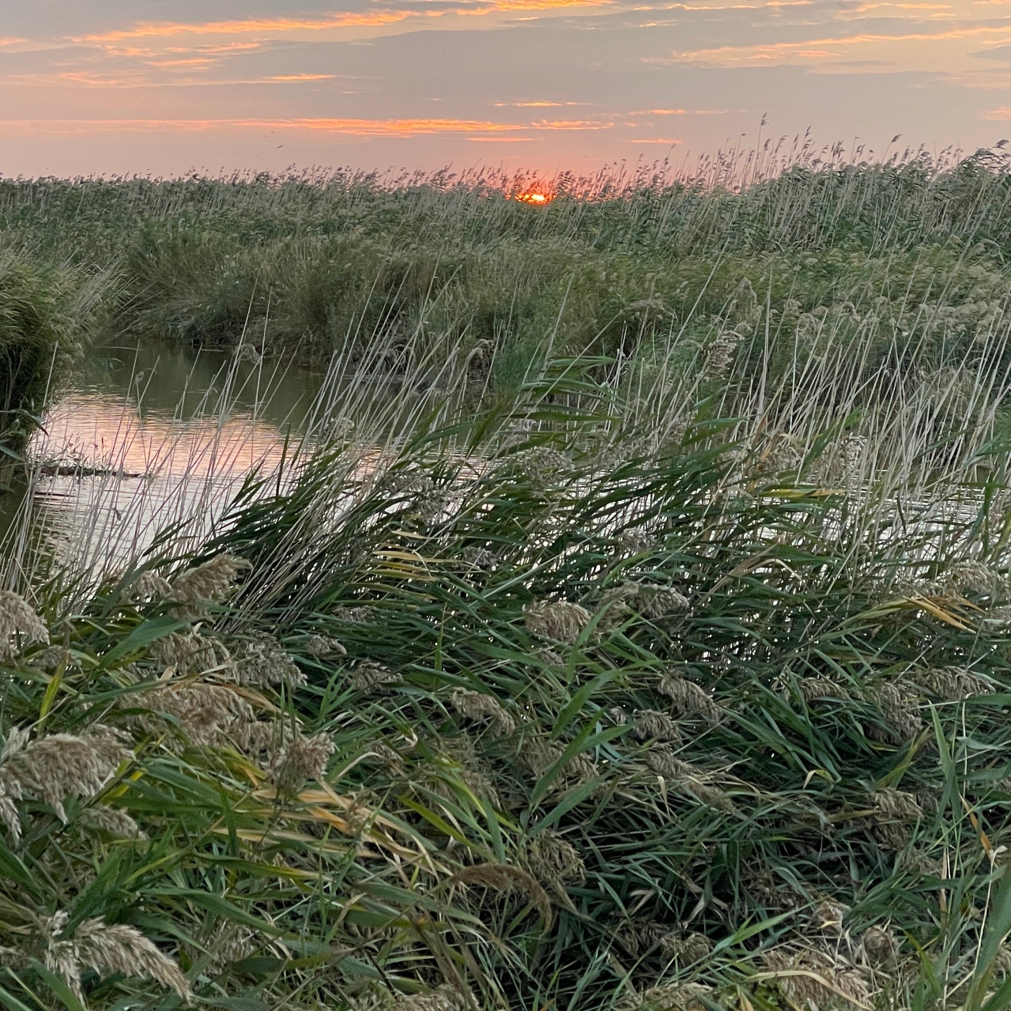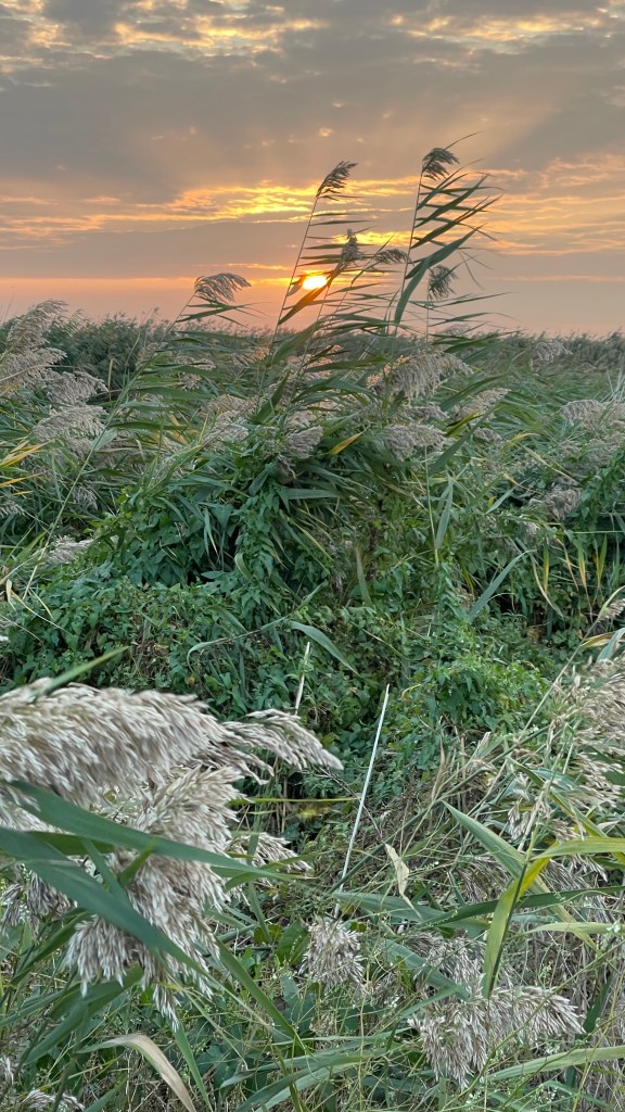 Desigur, m-am trezit dimineața devreme să fac niște fotografii. În spatele stufărișului, destul de aproape, se află Marea Neagră, ale cărei valuri s-au auzit toată noaptea, și noi ne întrebam dacă se trage cu tunul sau sînt numai valuri. Am decis, în unanimitate, că sînt valuri, și am dormit tun.