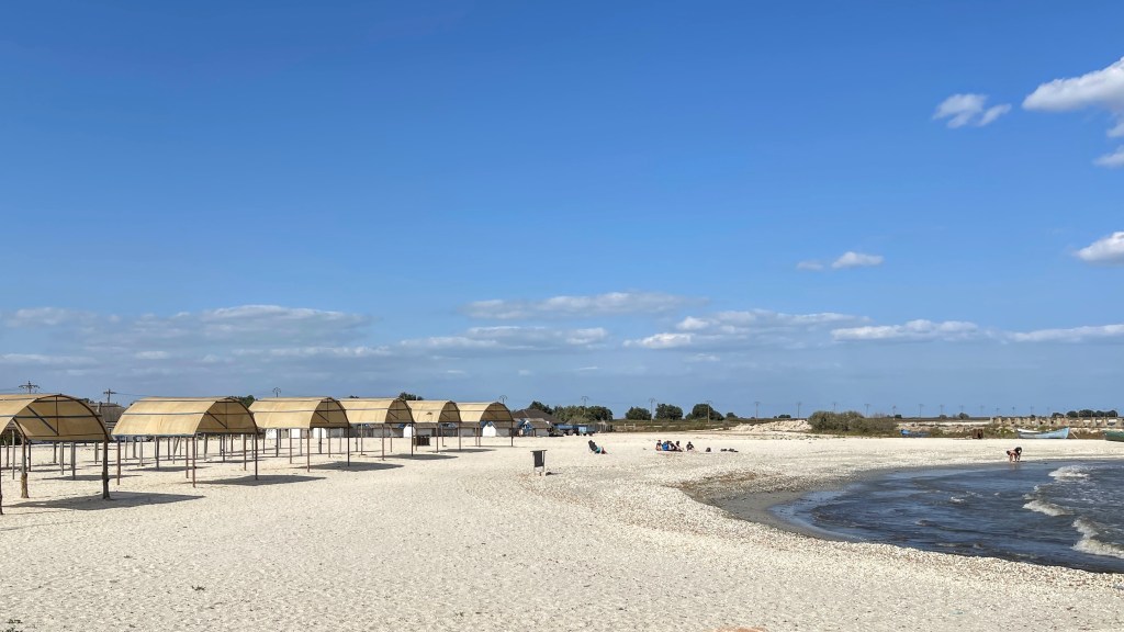 În prezent, Gura Portiței a devenit un loc foarte turistic, cu șezlonguri, umbrele de plajă, căsuțe pe plajă (frumoase, ce pot să spun), o piscină, un bar, un restaurant de fițe, și un… heliport, care m-a întristat. Tichie de mărgăritar ne trebuia! La revedere, sălbăticie. Bună ziua, civilizație.
