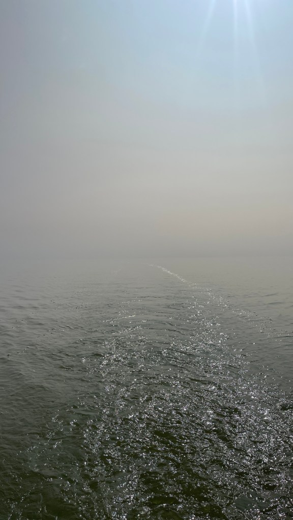 Lacul care în ziua anterioară era vântos, furtunos și agitat, acum era ireal de liniștit. De speriat. Am mers vreo 20 de kilometri, ziceai ca e ceață … se auzea numai motorul cum torcea, gros, ca un tigru bătrân.
