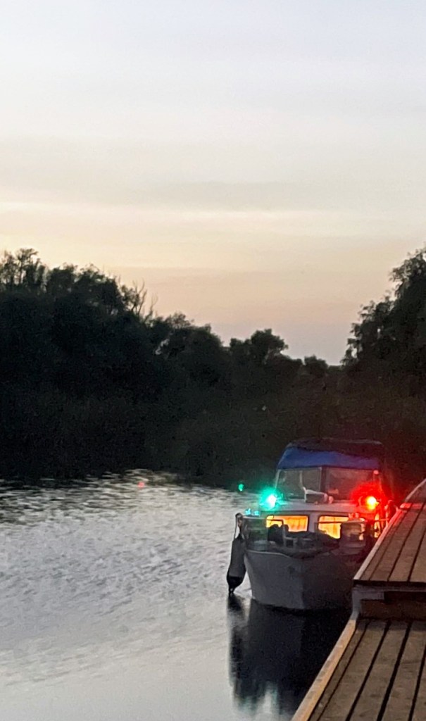 După o zi întreagă de navigație pe canale, evitând copacii ascunși / scufundați, a apărut un astfel de paznic, pe un ATV ultimul tip, și ne-a cerut, scurt și sec, să mutăm barca de la docul, acum privat, la partea publică, cu 3 metri mai la dreapta, și să ancorăm pe o plajă mică. Mișu s-a scărpinat în cap, explicând tipului că docul a fost construit mult înainte de achiziționarea terenului. Fața paznicului era lipsită de expresie, parcă vorbeam la perete, și când a deschis iar gura, a zis: “șeful se uită și la mine, și la voi, dacă vă las, mă dă afară.”
