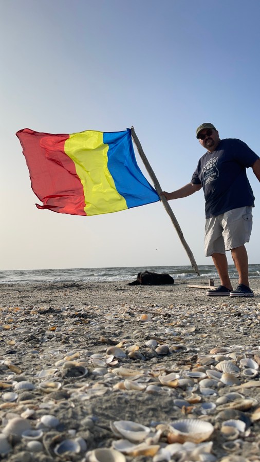 Pentru noroc, am luat cu mine steagul României, al lui Cosmin al meu, cadou de la Bunicul lui, să-l am aproape de inimă, și să ne identificăm în ochii celor care ne priveau de sus (literalmente, pentru avioanele de spionaj, pentru că una din strategiile războiului modern este: întâi tragi și apoi vezi ce-ai doborât).
