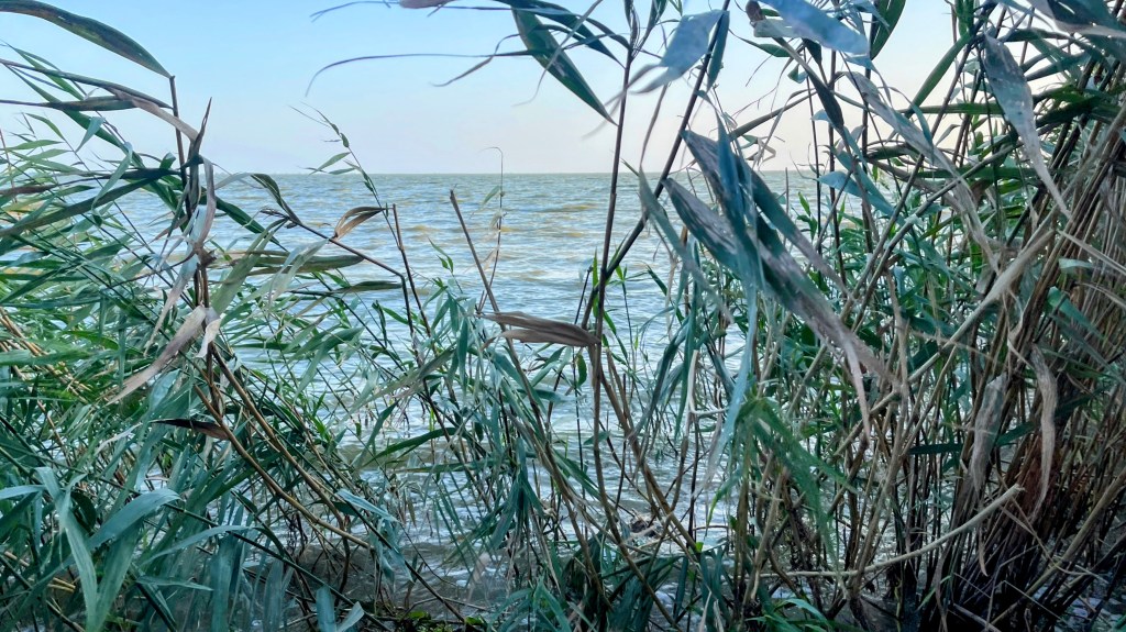 Așteptând barca să ne remorcheze – vântul era atât de puternic încât ne împingea tot mai mult în stuf, făcând ca barca să fie foarte greu de găsit.
