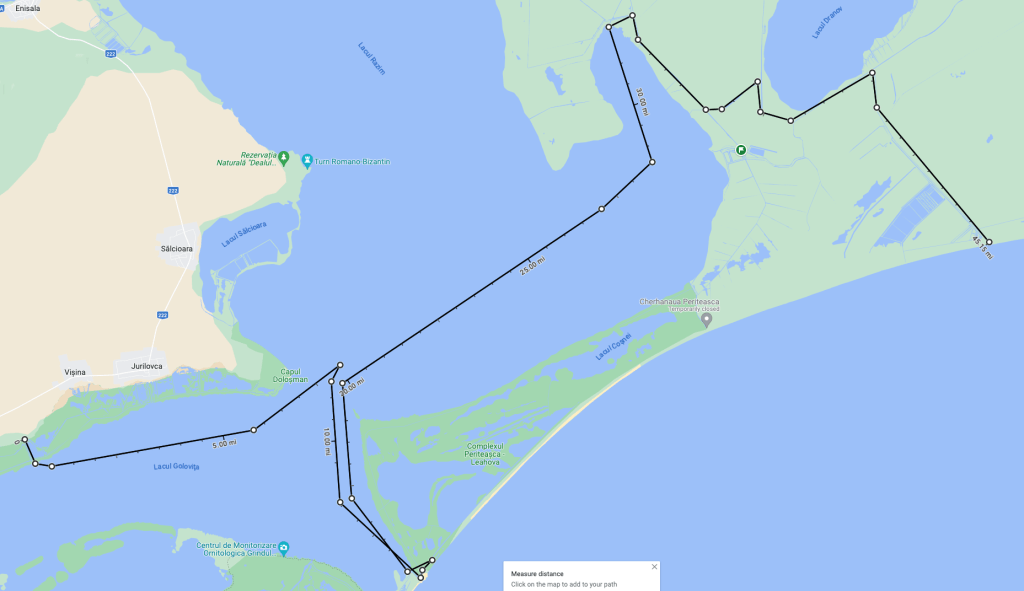 ASAAAAA… Bravo Fane, ai mai pigulit-o! Imi place acum. am si doua (mici) adaugiri…am refacut traseul cu distante, pentru ca noi am intrat prin canalul Mustaca pe la Nord si am iesit prin Holbina la sud in lacul Razim si doi, distanta a fost de vreo 120 de km daca poti, adauga te rog harta si kilomtrajul in text La anul mergem iar, poate o fi pace si mergem mai mult!!!