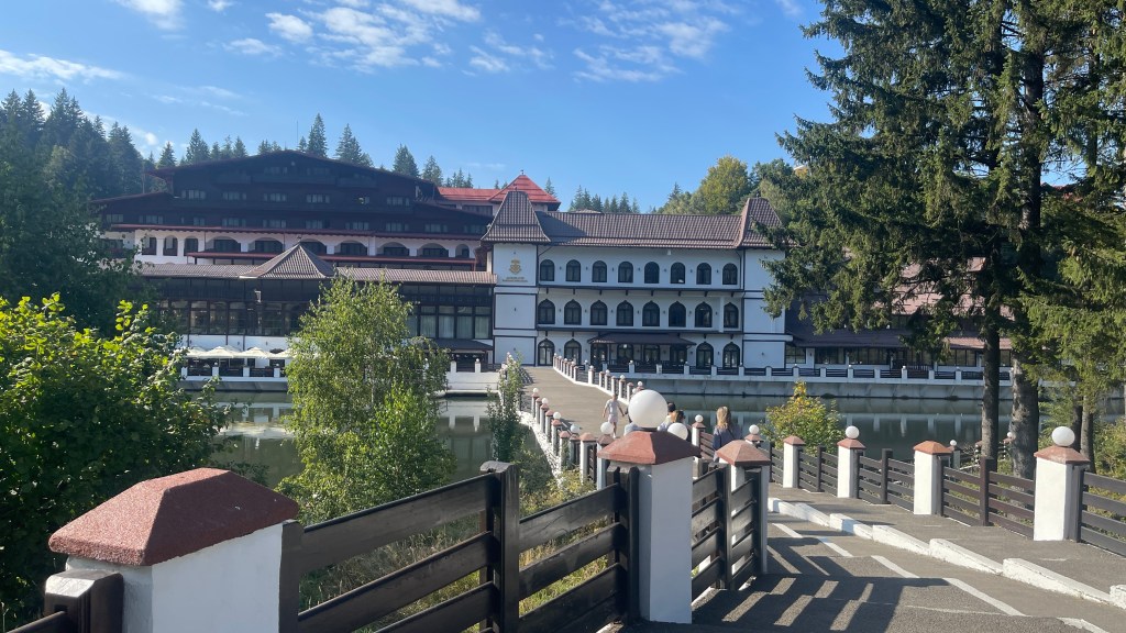 Am ajuns acolo cu trenul, în 2 ore și 30 de minute, într-o vineri. Rapid și în siguranță. Am încercat să evităm traficul de pe Valea Prahovei, știam noi din povești că vinerea pe Valea Prahovei se circulă bară la bară și prin stațiuni este chiar ca o parcare, nu se mișcă nimic. N-avea nici o legătură cu faptul că eu nu mai conduc în România (de când m-a pocnit unul, din spate, la un semafor, pentru că n-am trecut pe roșu – am luat de la Avis o mașină întreagă și am dus înapoi jumătate) și nici Florentina nu părea prea dornică să învârtă de volan, ea fiind o globe trotter-iță cu multă experiență, dar cred că în materie de condus, mai ușor. Toată lumea bârfește trenurile, dar CFR-ul cu care am mers noi a venit și a plecat la ora exactă. Și ne-am dat și cu clasa I-a, pentru că puteam. La jumătate de oră de București, la întoarcere, ne-am dat seama că la clasa 2-a era mai bine.