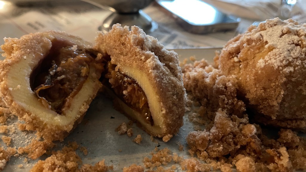 La prânz spre seară am ajuns iar la Hanu Berarilor Casa Elena Lupescu și aici musafirii au observat că la restaurant se vorbea aproape numai românește (spre deosebire de Caru cu Bere). Și au zis: “Așa, da. Mâncăm unde mănâncă localnicii”. Și le-a plăcut foarte mult. Pe papanași nu s-au mai bătut, învățaseră lecția, au luat fiecare câte o porție. (Mi-a spus Dragoș că la fiecare restaurant luau numai papanași la desert. Erau înnebuniți după ei.)