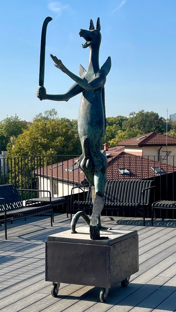 În teatru, mic și independent, sculpturi, artă modernă. După ce am fost dus la Efectul Picasso, și acum la Teatrul Nou, cred că este o conspirație. Prietenii vor neapărat să mă facă să înțeleg arta modernă. Și eu, nimic.