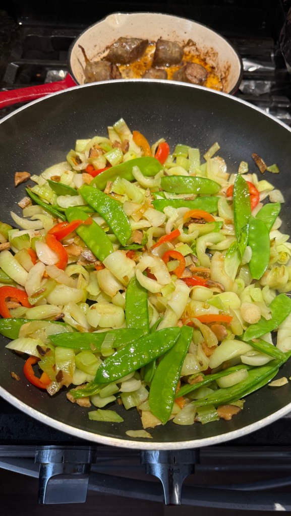 Am gătit repede niște super vegetale chinezești în stil chinezesc, și niște rămășițe de carne în stil rămășițe. Ideea e că mi-a ieșit, am ras totul, am fost chiar lăudat.