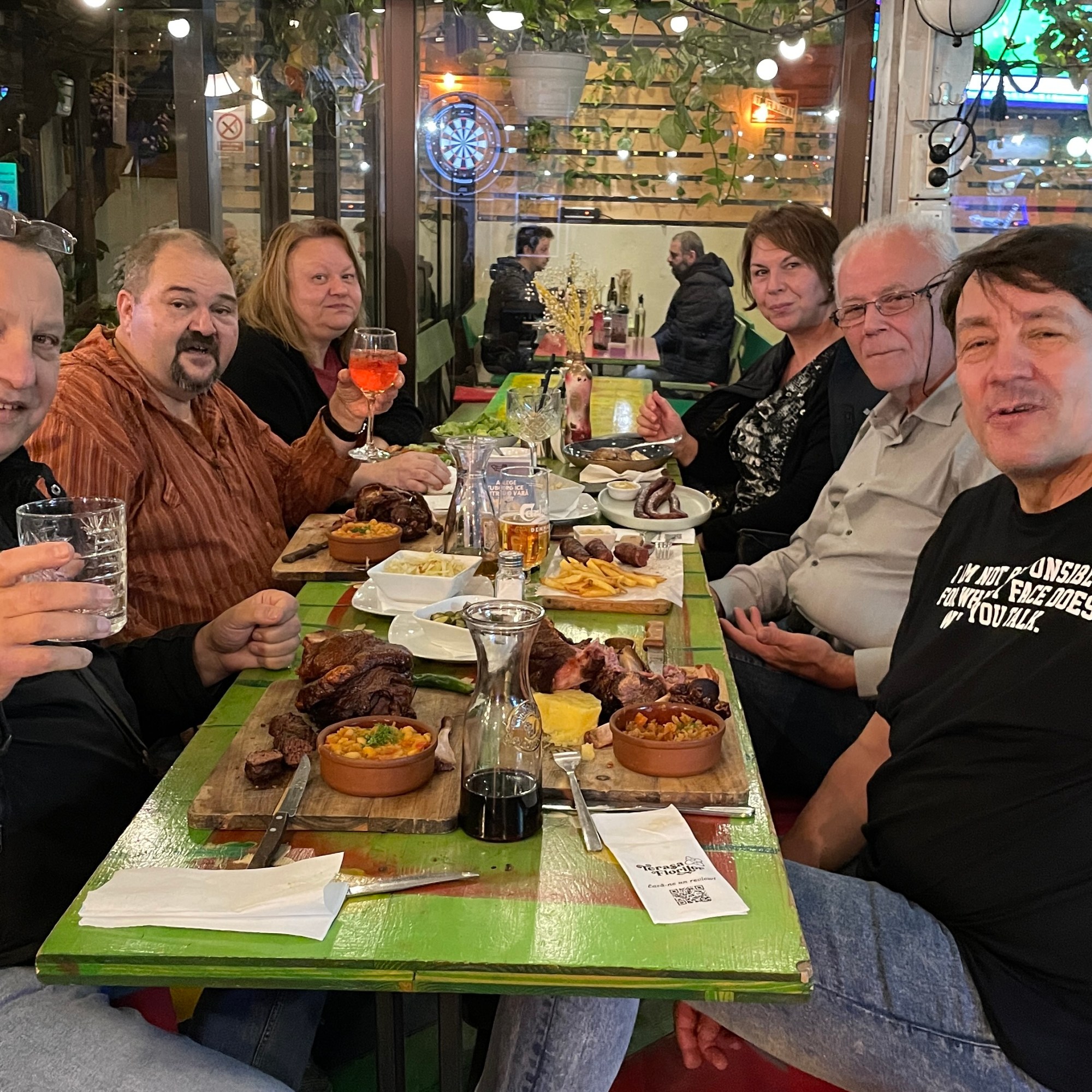 În Germania, pastramă (bună, de data asta – de la Carrefour!), cârnați de Pleșcoi și, surpriza pe care ne-a făcut-o unchiul meu, tare mândru de el, mititei! Era așa de fericit, parcă găsise o monedă de colecție! Am leșinat puțin în sufletul meu, dar am mâncat ca la concurs! Nu trebuia, dar lupta cu mine însumi era deja pierdută!