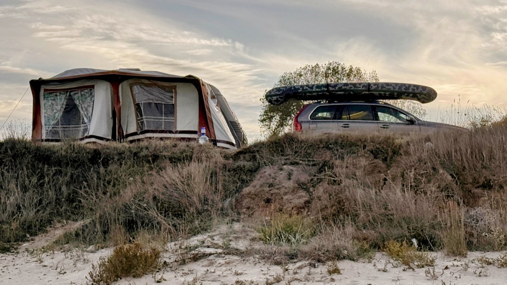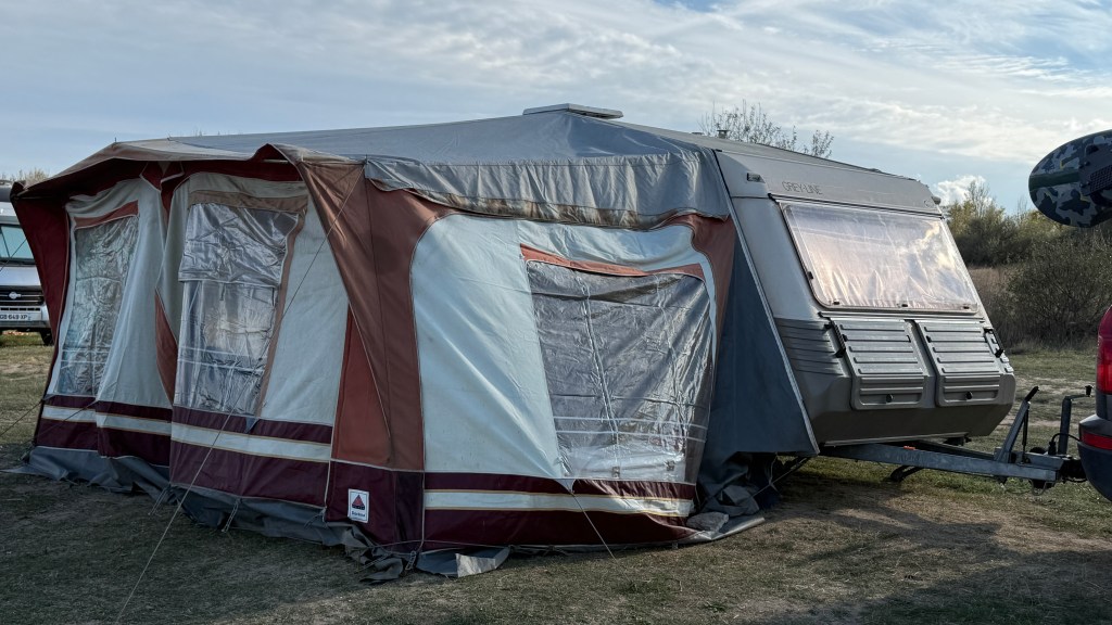 My comments from last year about the car and the caravan were taken very seriously. The trip was officially declared a Test Run, and a list was made of everything that needed fixing and/or improving. But as with any list for a caravan (or camping in general), it started multiplying on its own, like rabbits: camping accessories, extension cords of every length, supports, plugs, adapters, tools that “will definitely come in handy for something,” a super side tent – made specially for this caravan model (the most useful thing), fans, a big battery, smaller batteries, another set of batteries, mosquito-repellent lamp, leveling kit, three “dedicated” navigation apps, five professional weather apps (or vice versa), sensors, water jerrycans, waste jerrycans (clearly labeled so they don’t get mixed up), a dishwasher (!), three fridges, ropes, bags, a set of small paddles (!), emergency kits, kits for the emergency kits…