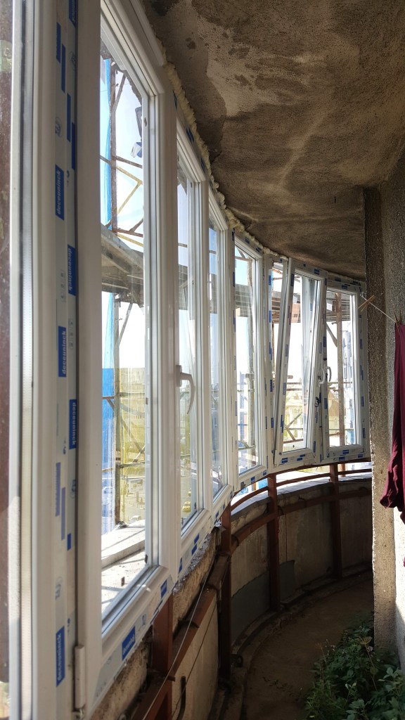 Apar geamurile cele noi: montate, spumate, și Dumnezeu cu mila. Nu tu pervaz, nu tu finisaj. Doriți margini drepte? Extra. Doriți colțuri? Extra. Doriți civilizație? Nu intră în contract. Extra.