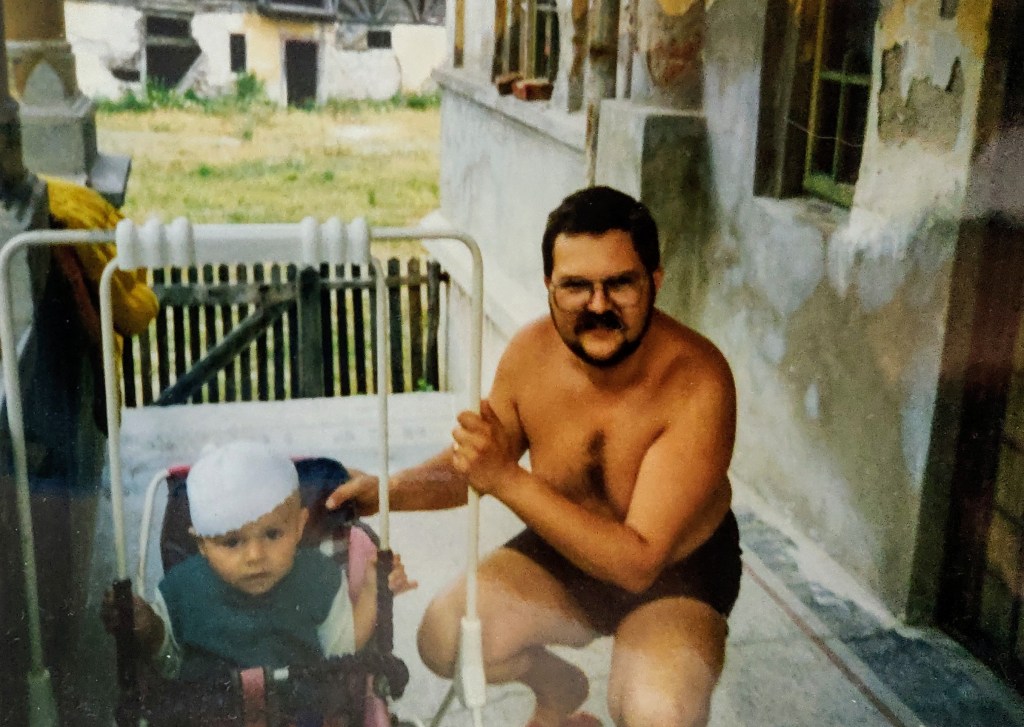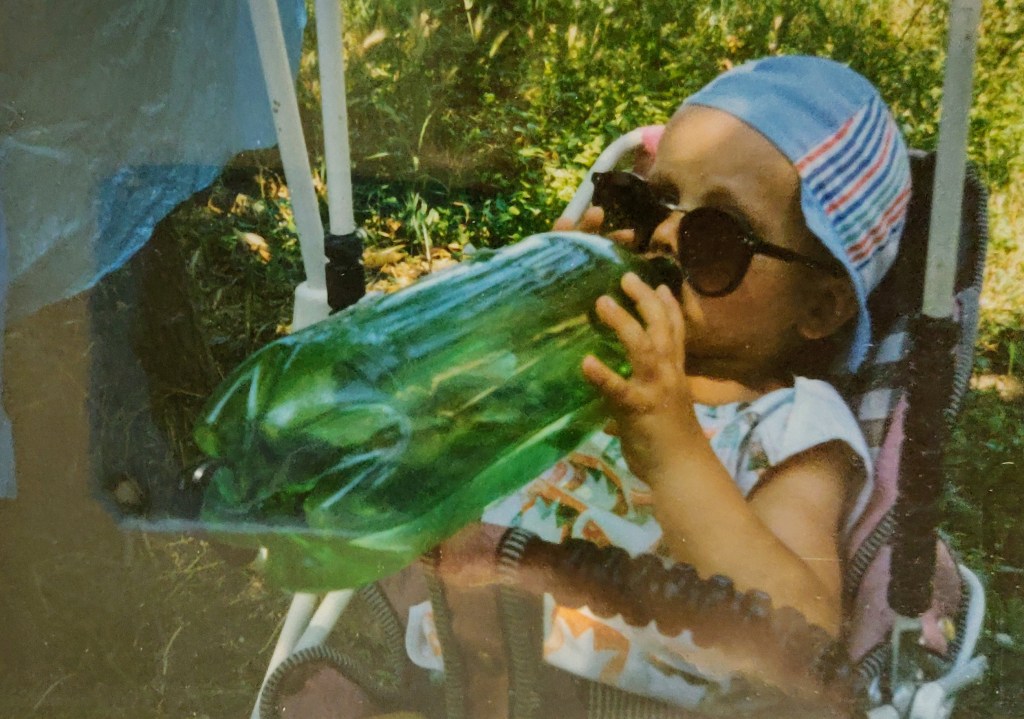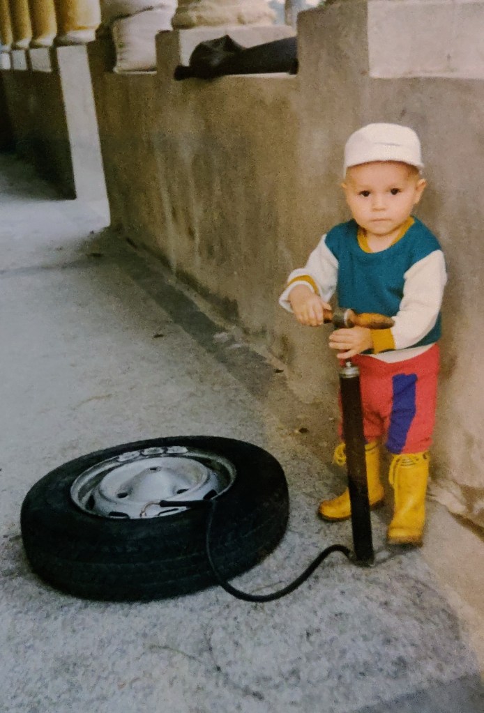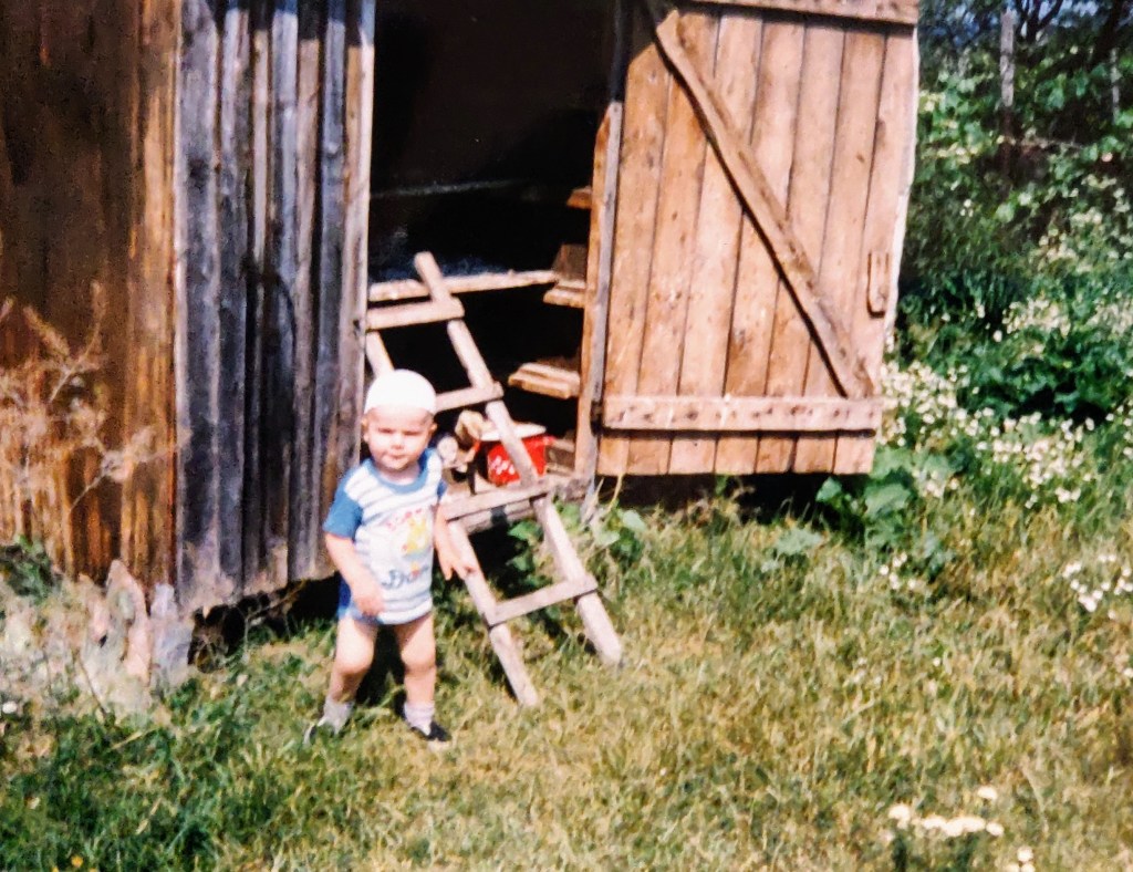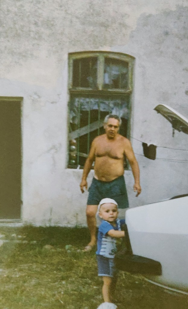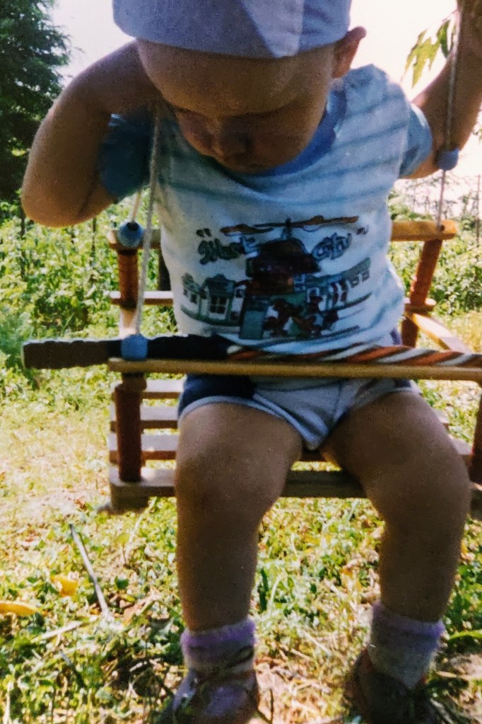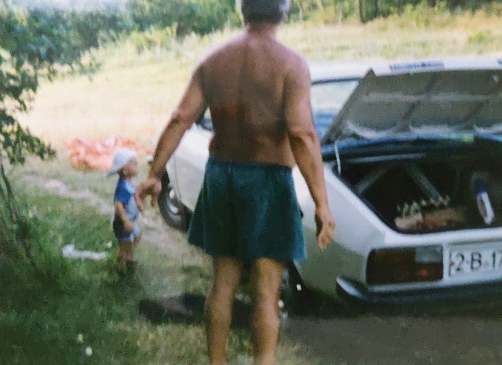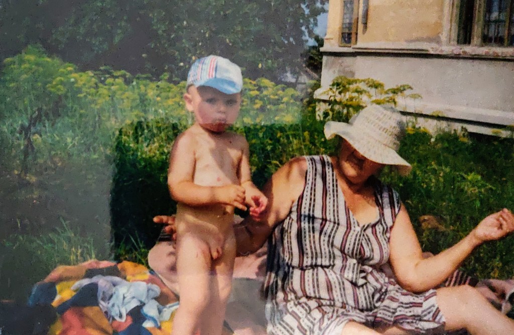 Cosmin avea 2 ani și puțin. Ai mei l-au luat aproape toată vara la Hulubești și Mama îl ținea în fundul gol toată ziua să-l dezvețe de pamperși.